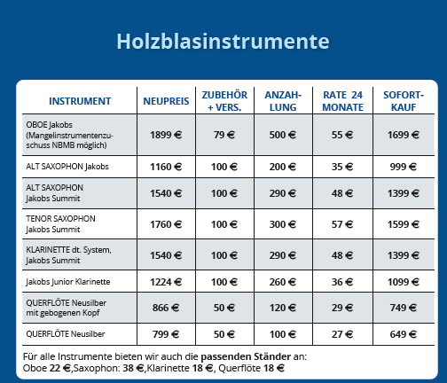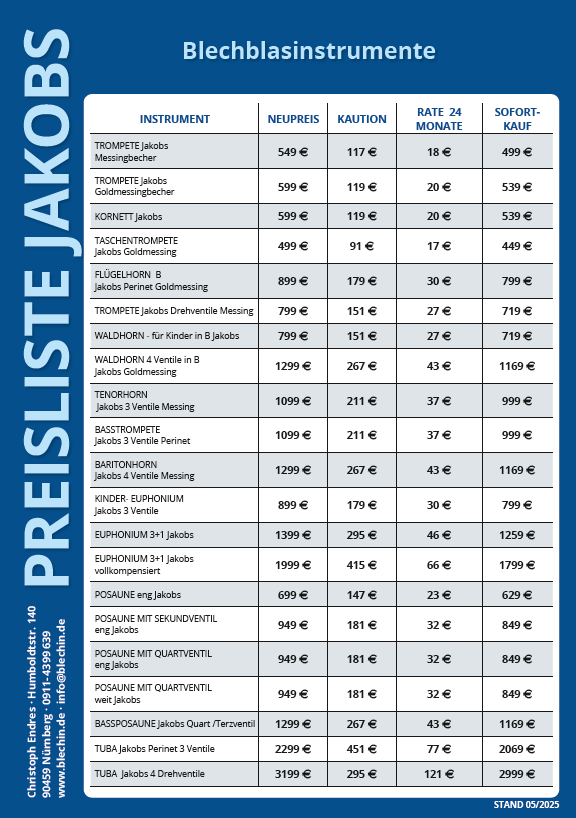 arbeiten wir mit meinem Innungskollegen Christoph Kramer Meisterwerkstatt für Holzblasinstrumente zusammen. Er vertreibt und repariert Holzblasinstrumente der Marke Jakobs und bietet Finanzierungen von Holzblasinstrumenten an. Dort können Sie auch Blechbasinstrumente abgeben die von uns überholt werden und im Geschäft Sattlertorstrasse 12, 91301 Forchheim wieder ausgegeben werden.