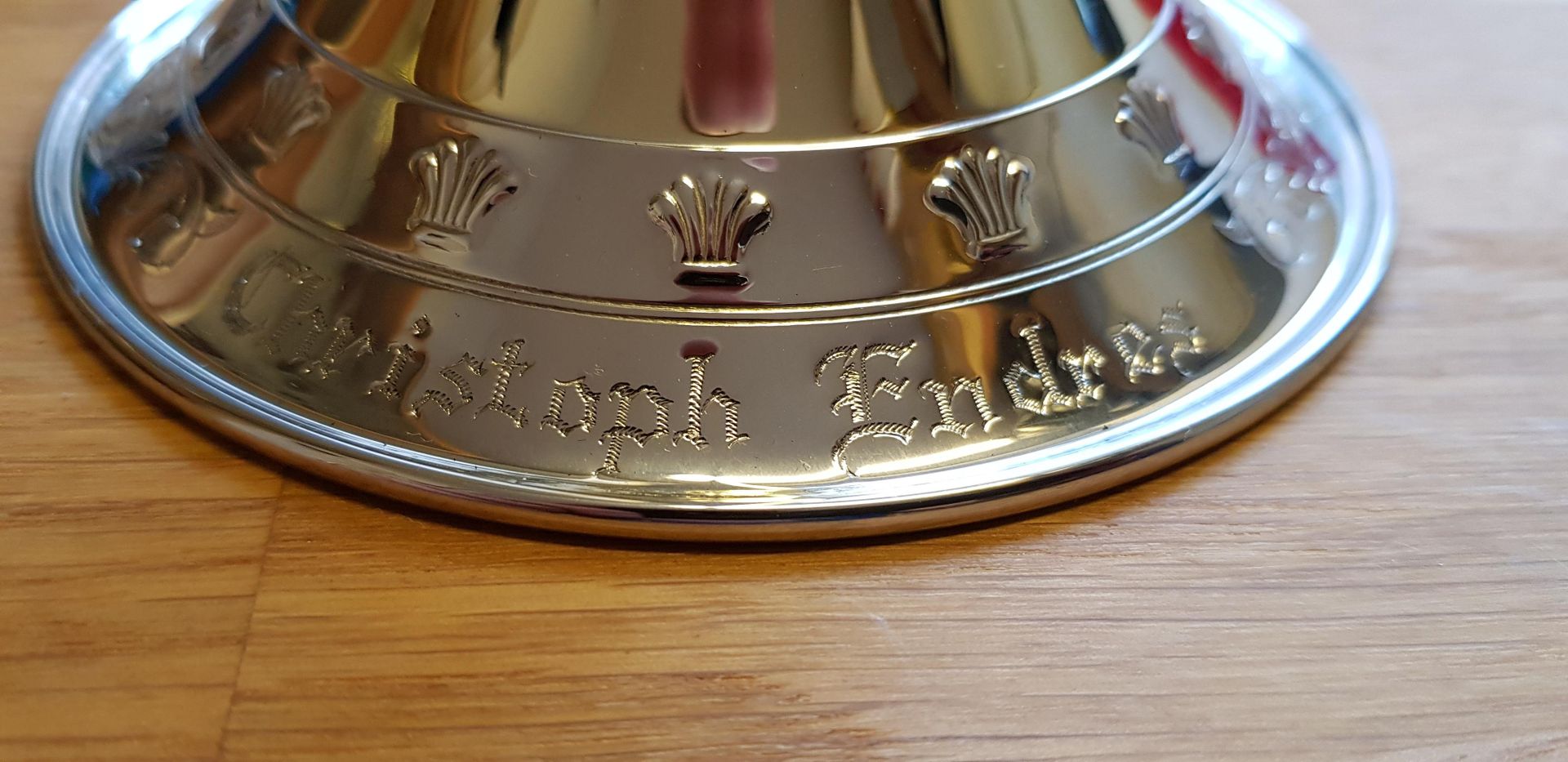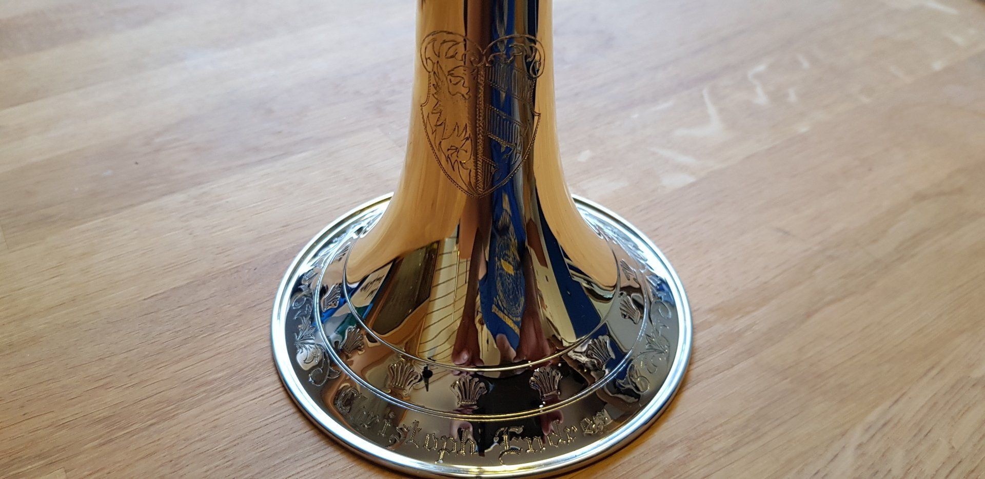 - Handgefertigter Messingschallbecher Durchmesser 125 mm mit Neusilberkranz