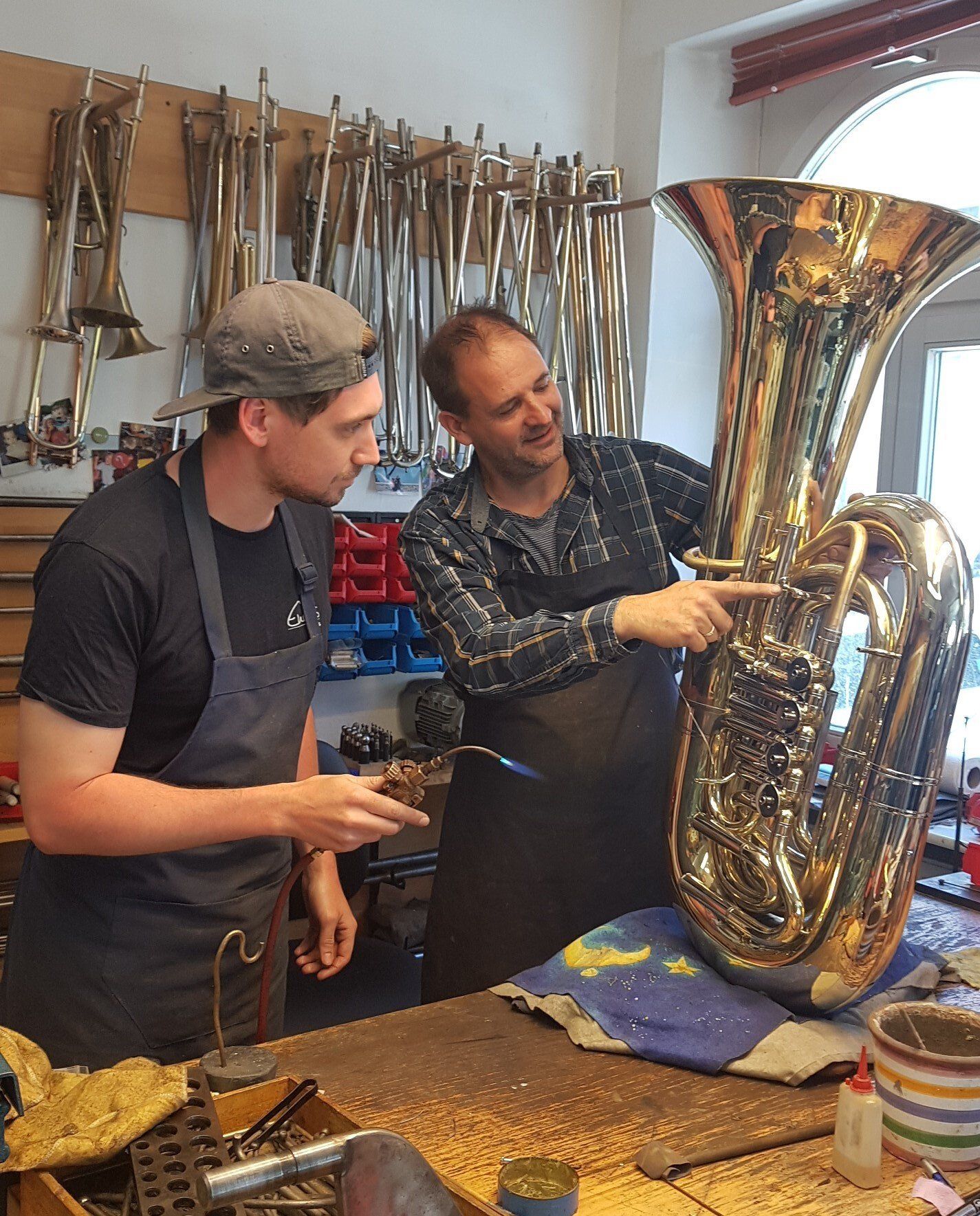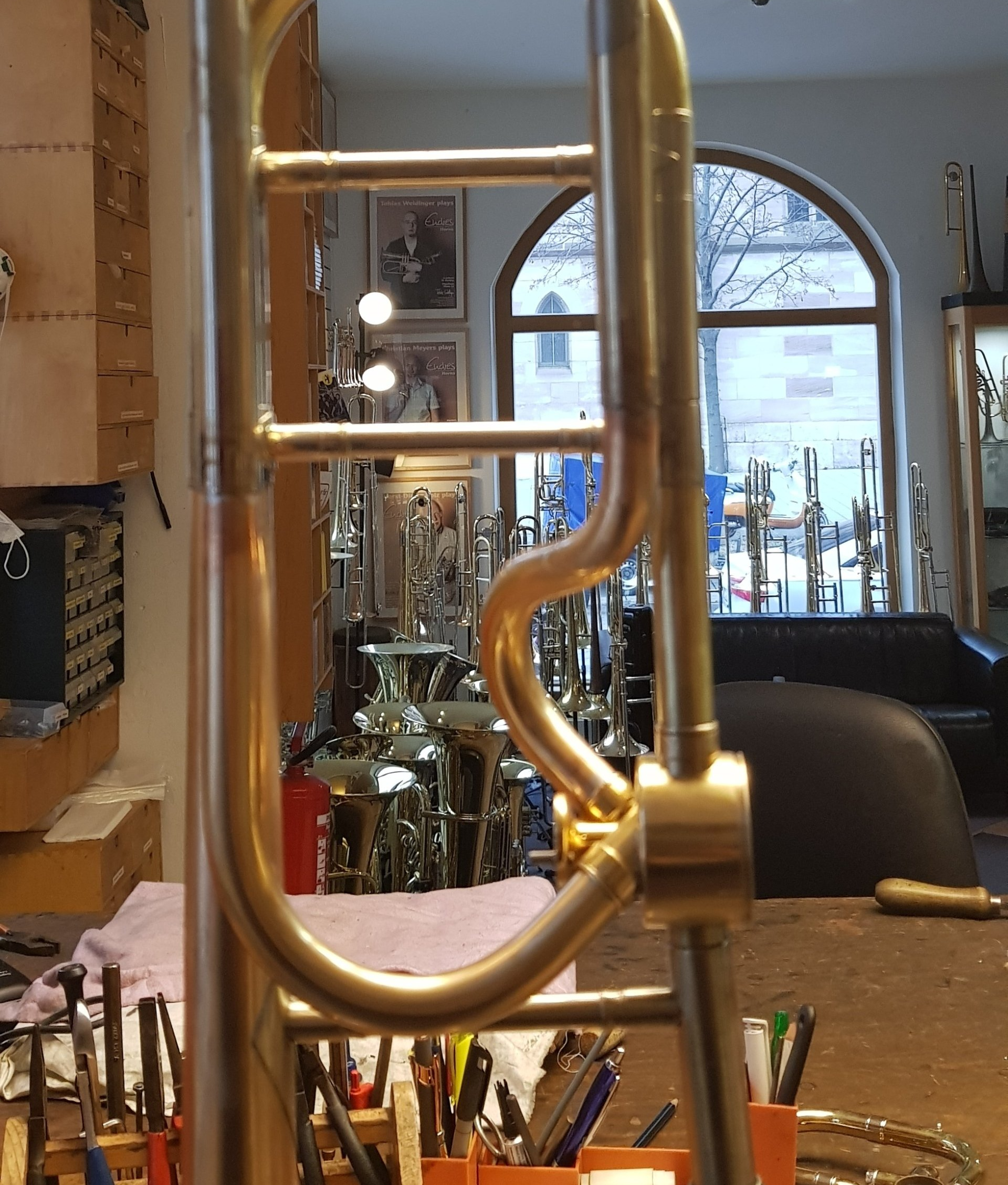 Wir bauen Ihre undichten oder beschädigtern Perinetventile nach. Die Edelstahlkolben werden gebohrt, die Durchgänge eingesetzt und mit exakter Kugel kalibriert. Dann erfolgt das Überdrehen und einhonen der Ventile. Nach dem Einstellen der Sperrungen werden die Ventile handgeläppt. Egal ob bei einem 100 Jahre alten Kornet, bei kompensierten Ventilsystemen bis hin zur Tubagröße: Die Kompression ist wieder hergestellt.
