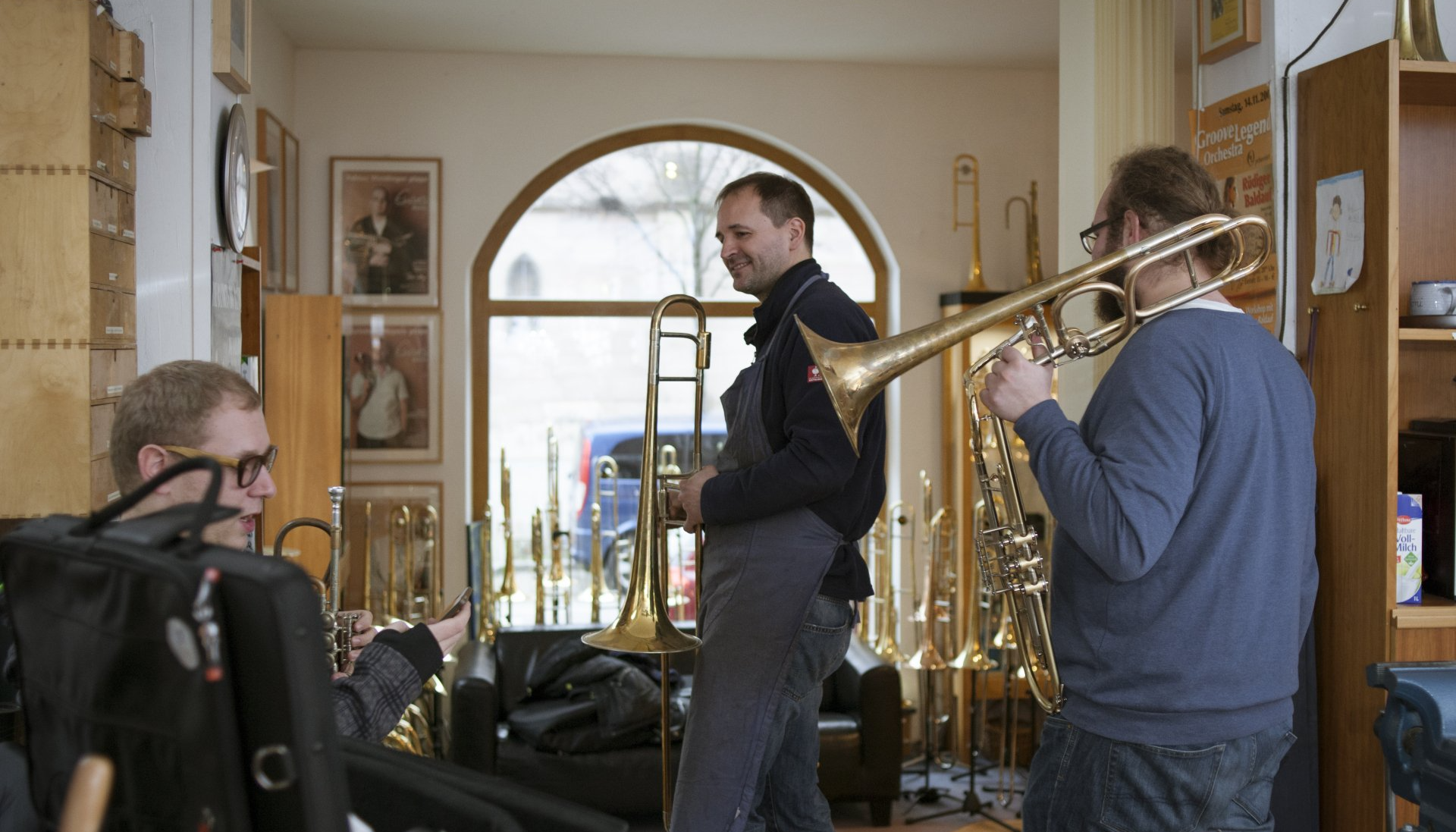 für die Reparatur und den Neubau von Metallblasinstrumenten. Ausgebildete Fachkräfte prägen das hohe Niveau des Betriebs. Die Wünsche und Vorstellungen unserer Kunden stellt unsere Werkstatt immer wieder vor neue Herausforderungen, die wir durch Neuentwicklungen in unser breites Sortiment einfließen lassen. Eine Vielzahl an handgebauten Meisterinstrumenten steht zum Testen im Geschäft bereit. Diese bieten die Richtschnur für das nach Kundenwünschen gebaute Meisterinstrument.